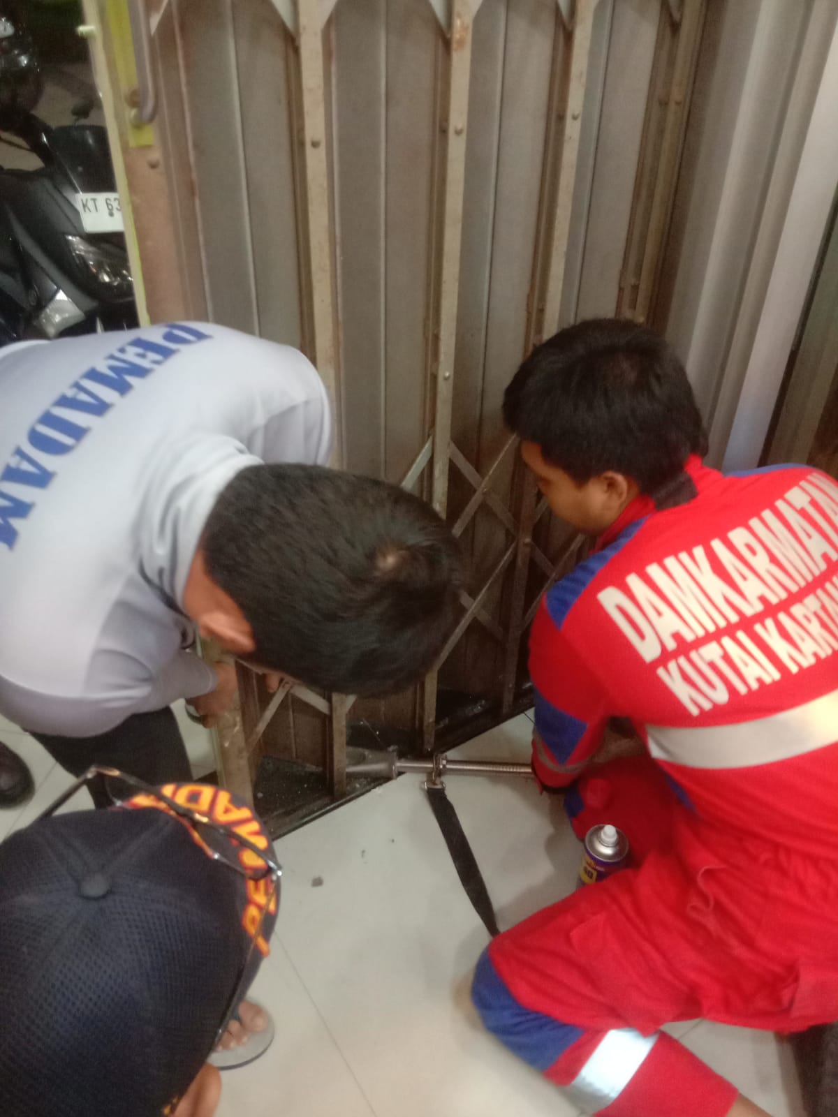 Laporan diterima dari pelapor atas nama Dini pada malam hari terkait pintu rolling door yang tidak dapat ditutup karena tersangkut dan terlepas dari rel. Menindaklanjuti laporan tersebut, personel Damkarmatan segera menuju lokasi untuk melakukan penanganan.